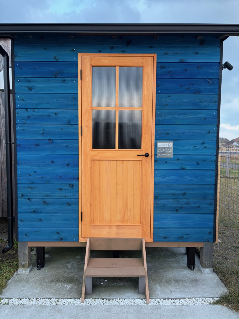 アウトドア施設の位置づけの為、キャビン内にはトイレ設備はございませんが、お手洗いや温泉へ行かれる場合は専用の通路を通ってすぐ真裏の施設(みついし昆布温泉 蔵三)へご入館頂けます。 ※洗面台は各キャビン内に新設いたしました。