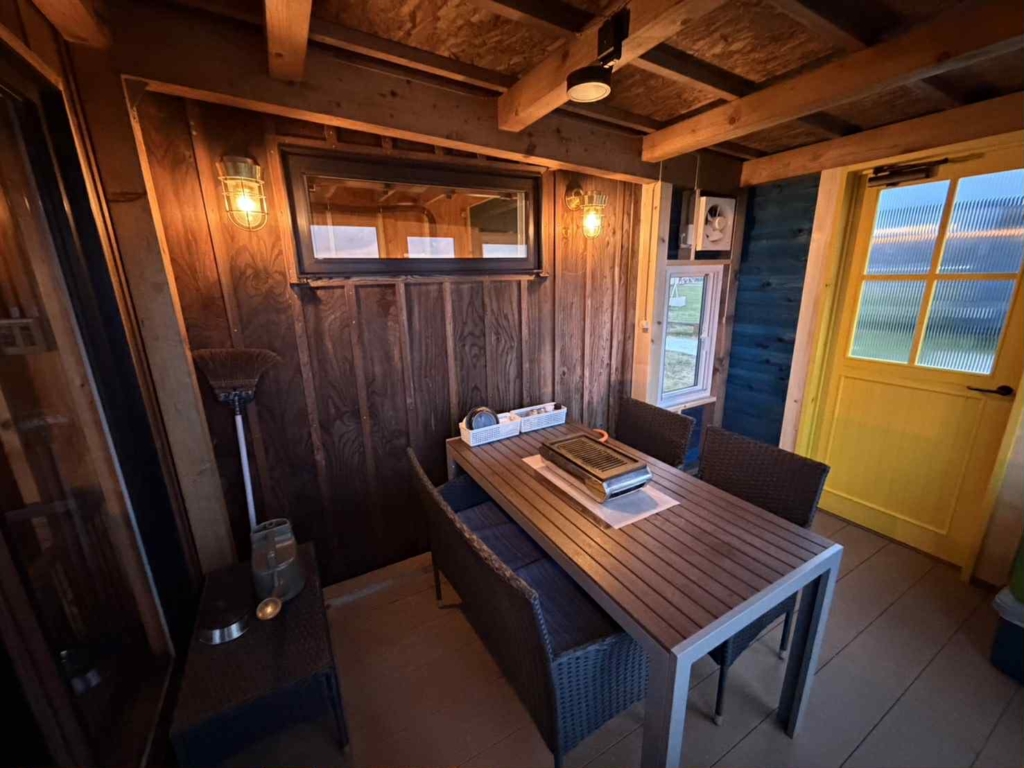 キャビン内設備は/WiFi完備・エアコン・洗面台・冷凍冷蔵庫・電子レンジ・Franceベット2台(最大4台)・ダイニングテーブルイス・空気清浄機・Netflix対応テレビ・電気ケトル・Rifaドライヤー・作務衣・タオル・アメニティー